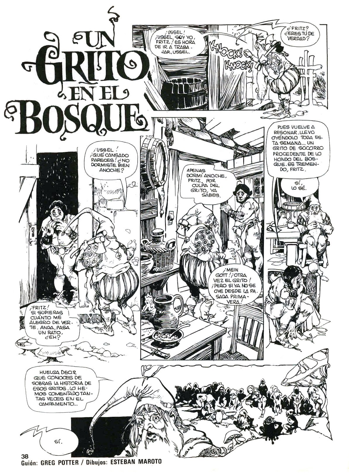 Estupenda historieta del guionista Greg Potter y dibujos de uno de los grandes dibujantes españoles y uno de los que más gustan en la caverna, Esteban Maroto. Un grito en el bosque se publicó en el número 7 de la revista Creepy de Josep Toutain. Las cosas no son siempre como parecen, ¿verdad?.